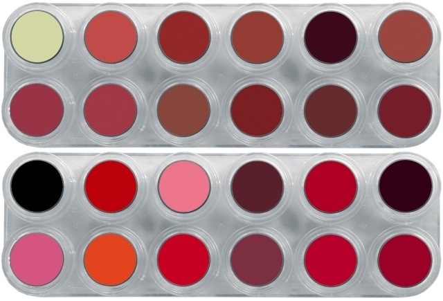 GrimasLK Lipstick palette 24 x 2.5ml. The LB and LF palette combined to make the complete range of all the colours plus the base for blending to the exact tone you want. LB=Base, 5-13, 5-15, 5-19, 5-21, 5-22, 5-23, 5 5-24, 5-26, 5-27, 5-28, 5-29. LF=1-1, 5-1, 5-2, 5-4, 5-5, 5-7, 5-10, 5-12, 5-30, 5-17, 5-31, 5-32.